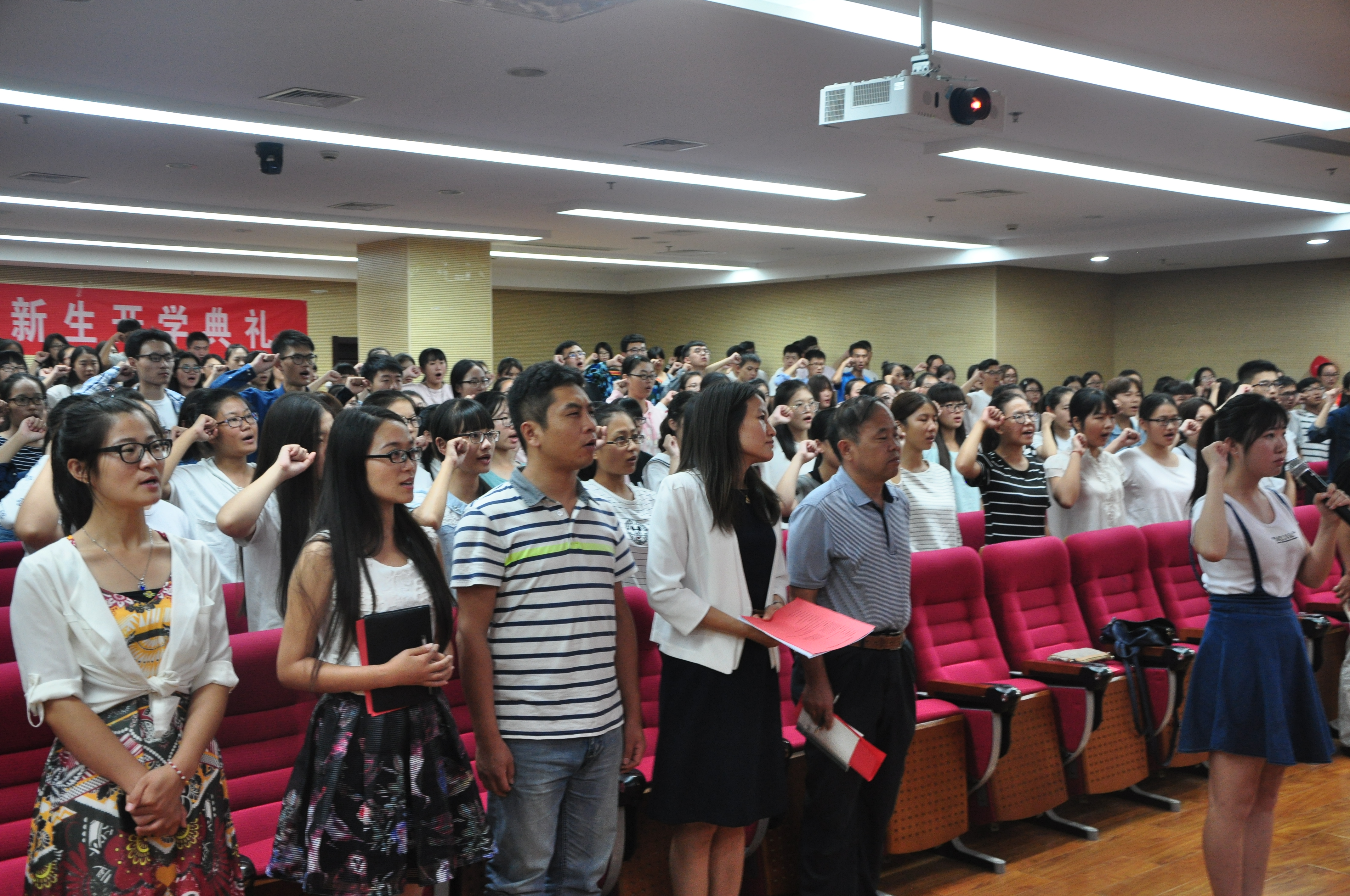 会议由院党委副书记齐艳的主持。学院院长陈国兴代表全院师生向2016级新生的到来表示热烈欢迎,在介绍学校及学院的发展历史与现状的同时,表达了对同学们的三个“希望”:秉承大学独立精神、学会自主自由选择、懂得责任担当,从而在外国语学院度过一个美好而有意义的大学。教师代表日语系王晶晶老师发言,希望同学们继续保持一颗求知若渴的心,尽快转换角色,适应崭新的大学生活。在校生代表姜丽媛和新生代表于涵也分别进行了发言。最后,全体新生宣读独立宣言,郑重地宣誓自己将学会独立,学会自理,学会自强。