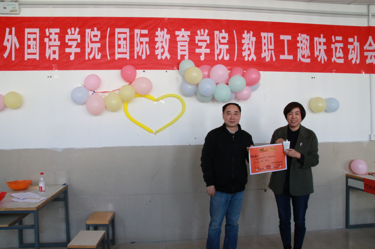 暖风胜意,春色盎然。为丰富我院教职工业余文化生活,展现教职工积极向上、活力健康的精神风貌,增进教师之间的工作友谊,为即将到来的崭新学期营造良好氛围,3月4日下午,我院于文科楼522举办教职工趣味运动会,我院党委书记陈国兴、院长鞠玉梅、党委副书记齐艳担任颁奖嘉宾,我院部分教职工参加。