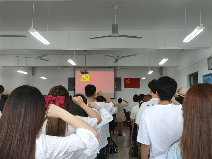 宣誓仪式在全体党员奏唱《国际歌》中拉开序幕。慷慨激昂的《国际歌》仿佛带我们身临其境般地回望了中国共产党的百年风雨路。接着,由党员代表宋欣欣领誓,带领全体党员进行入党宣誓(重温入党誓词)。全体党员紧握右拳,面对鲜红的党旗,庄严宣誓:“我志愿加入中国共产党……随时准备为党和人民牺牲一切,永不叛党。”铿锵恢宏的誓词,强烈震撼着在场的每一位党员,一字一句,神圣而豪迈,铮铮誓言,体现了党员同志们对中国共产党的无限忠诚,坚定了入党使命,奋斗初心。入党誓词是行动指南,是共产党人的座右铭,不断重温,终身践行,前进路上,对照承诺,时时检视自我,不断校正航向,方能行稳致远。全体党员们接受了入党誓词的洗礼,并进一步坚定了理想信念。