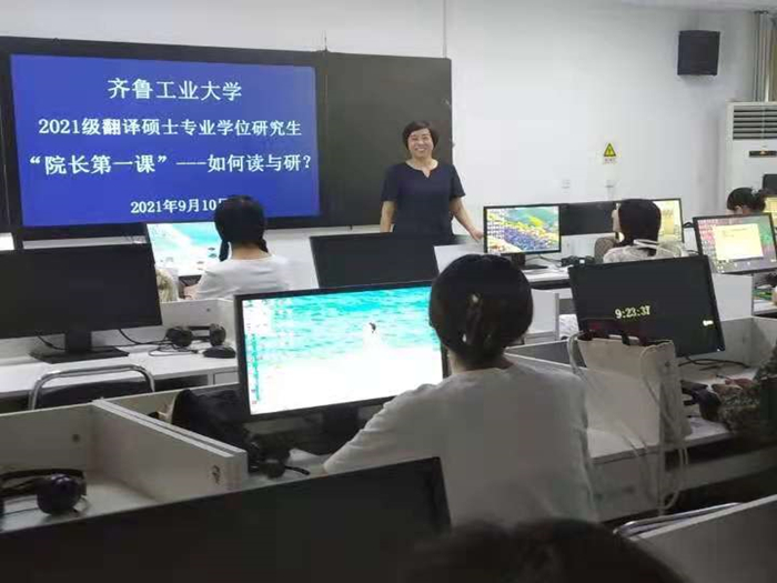 为提高研究生培养质量,营造崇实求新的学术氛围,帮助研究生新生合理规划科研。9月10日上午,外国语学院(国际教育学院)在实验北楼109室举行了2021级研究生新生“院长第一课”活动。我院院长鞠玉梅教授担任本次活动主讲嘉宾,2021级全体翻译硕士专业学位研究生参加。
