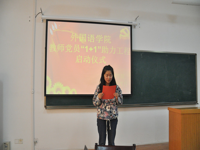 为深入贯彻落实党的群众路线,体现党员的先进性,密切贴近学生,了解学生所需,用真心和真情理解学生、帮助学生,为学生服务,4月20日下午,外国语学院在文科楼222室举办了党员教师1+1助力工程启动仪式。外国语学院党政领导、16位党员老师和16位受助学生参加。